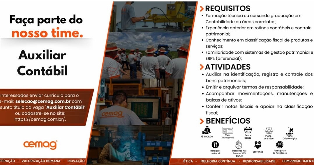 Vaga de emprego para Auxiliar Contábil no Cemag em Fortaleza e região nesta terça (02/09)
