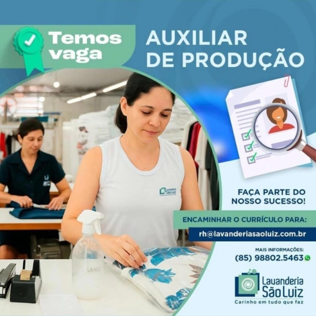 Vaga de emprego para Auxiliar de Produção sem experiência na Lavanderia São Luiz em Fortaleza e Região neste sábado e domingo (09/08 e 10/08)