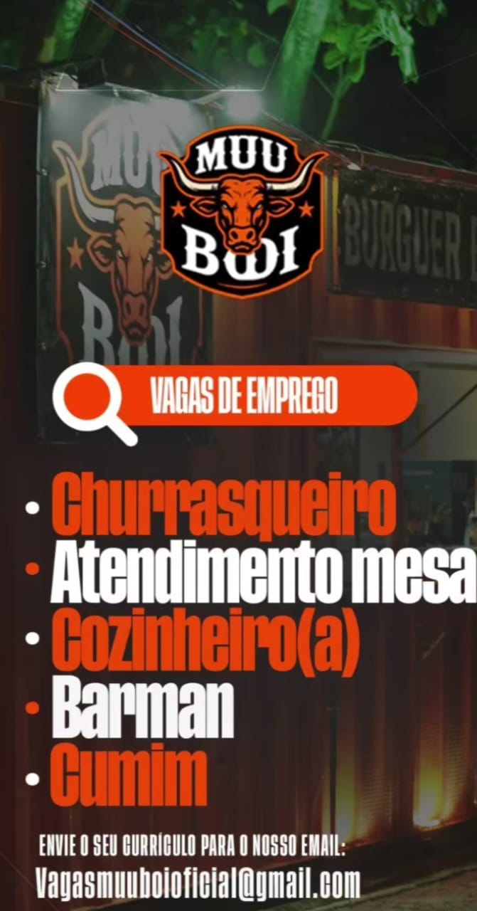 Vaga de emprego para Churrasqueiro no restaurante Muu Boi em Fortaleza e região nesta quarta (13/08)