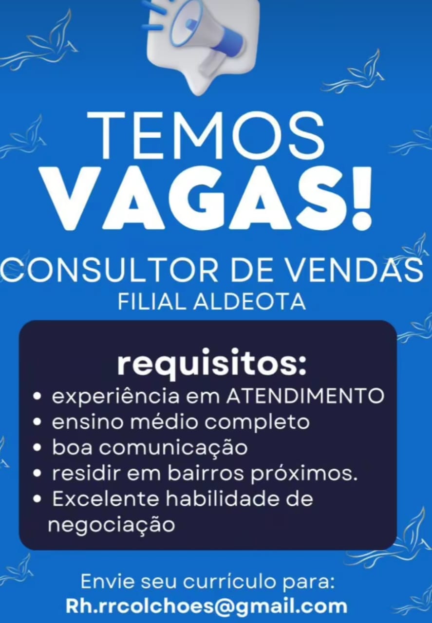 Vaga de emprego para Consultor de Vendas na empresa de colchões RR Colchões em Fortaleza e região nesta quarta (13/08)