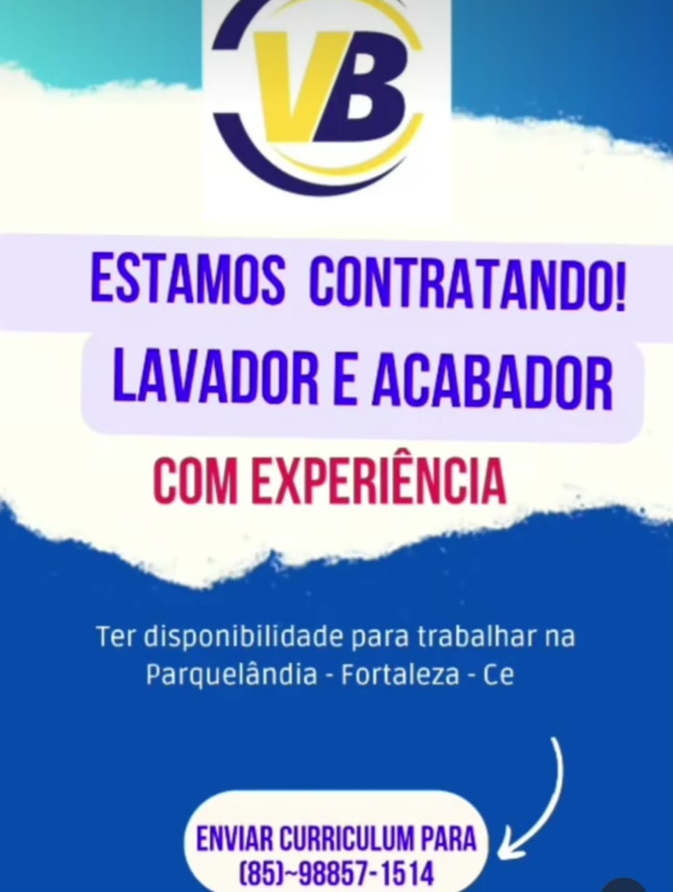 Vaga de emprego para Lavador e Acabador na empresa VB em Fortaleza e região nesta quarta (13/08)