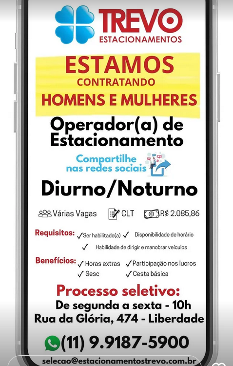Vaga de emprego para Operador(a) de Estacionamento sem experiência na Trevo em São Paulo e região nesta segunda (25/08)