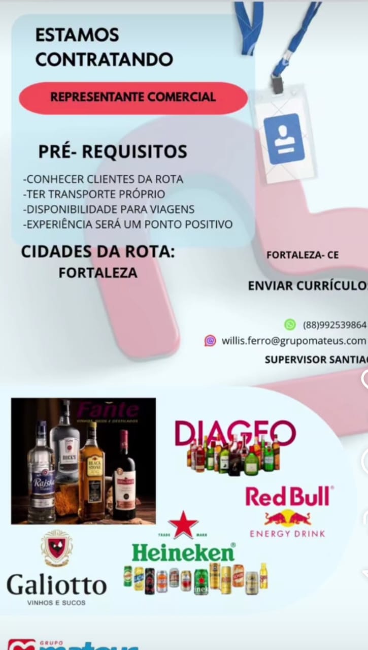 Vaga de emprego para Representante Comercial no Grupo Mateus em Fortaleza e região nesta quarta (13/08)