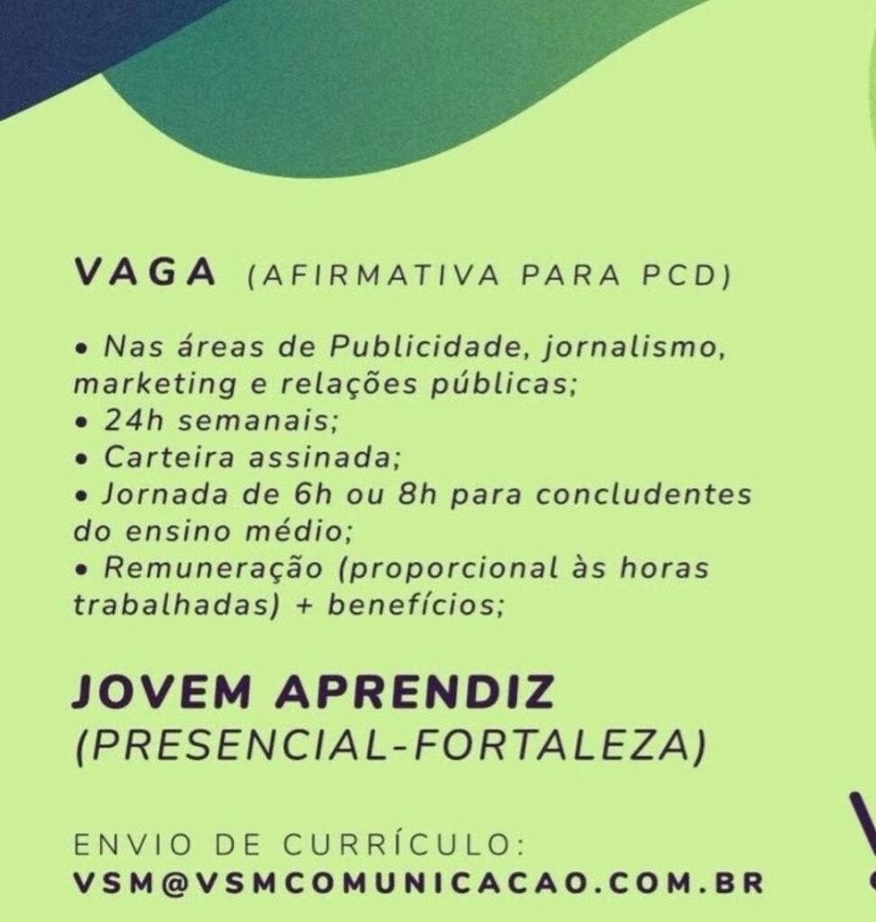 Vaga para Jovem Aprendiz no VSM Comunicação em Fortaleza e Região nesta quarta feira (23/07)