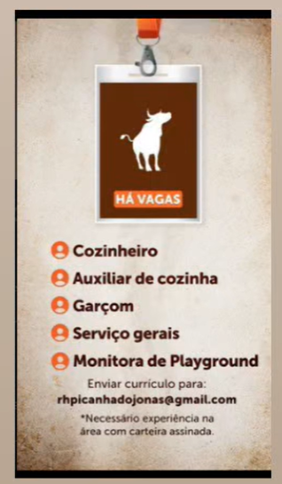 As informações sobre a oportunidade de trabalho, como salário, remuneração, benefícios, requisitos, local de trabalho e forma de candidatura (e-mail ou whatsapp para enviar seu currículo) estarão na imagem acima, caso estejam disponíveis.